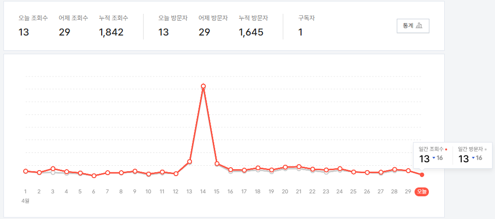 자~ 지방방송 끄고 본론으로 돌아가서 2주 전쯤에 방문자가 약 350명 정도가 방문하고 아주 흥분한 게 엊그제 같은데요.